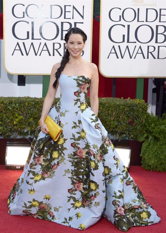 Finally, Lucy Liu in Carolina Herrera. This dress is everything every girl dreams of wearing one day. The sky blue is heavenly and the pink and yellow roses are perfectly purportioned as well as being perfectly placed. It is neither too busy nor too dull. I love a full skirt and die for dresses with surprise pockets in the skirt. Its such a cute detail.